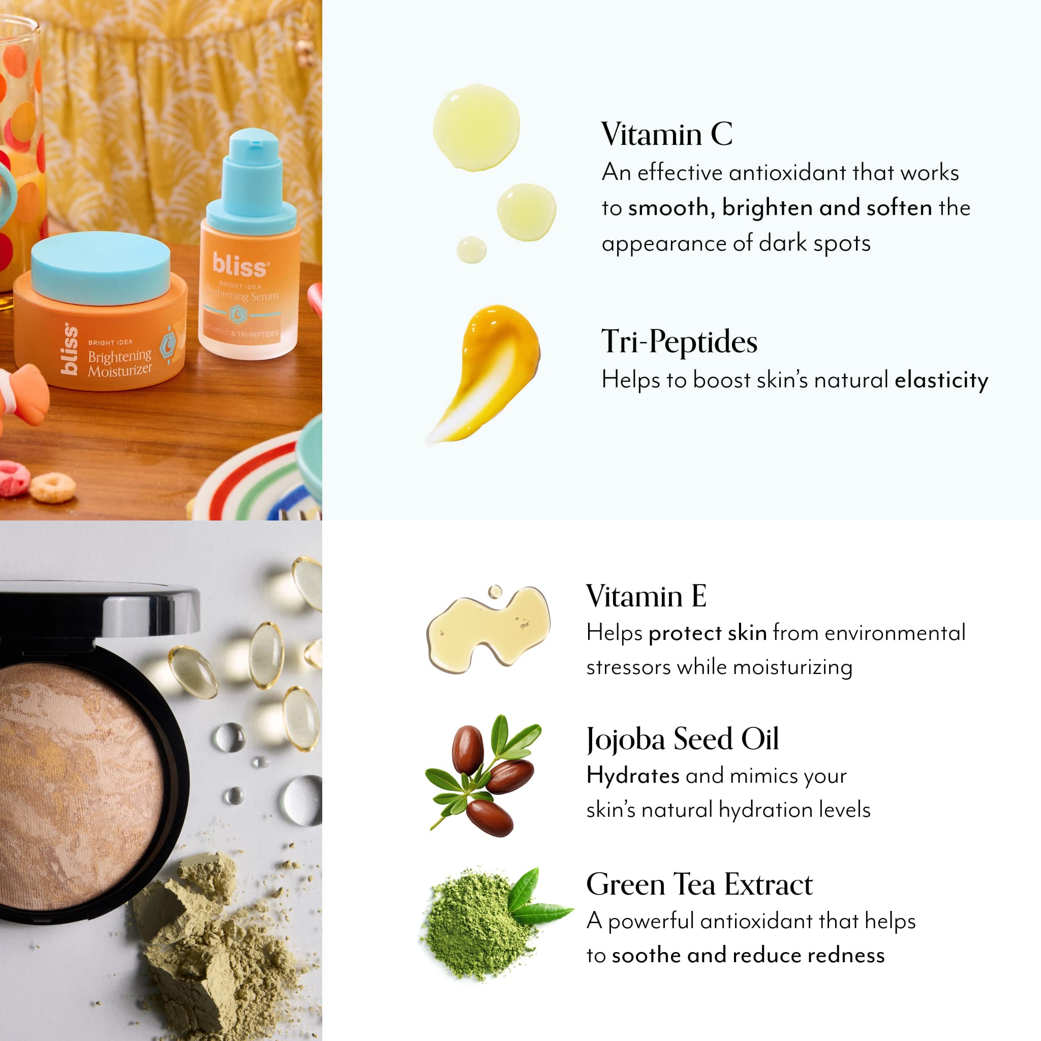 Add in the with Vitamin C for quenching hydration that works to really brighten.